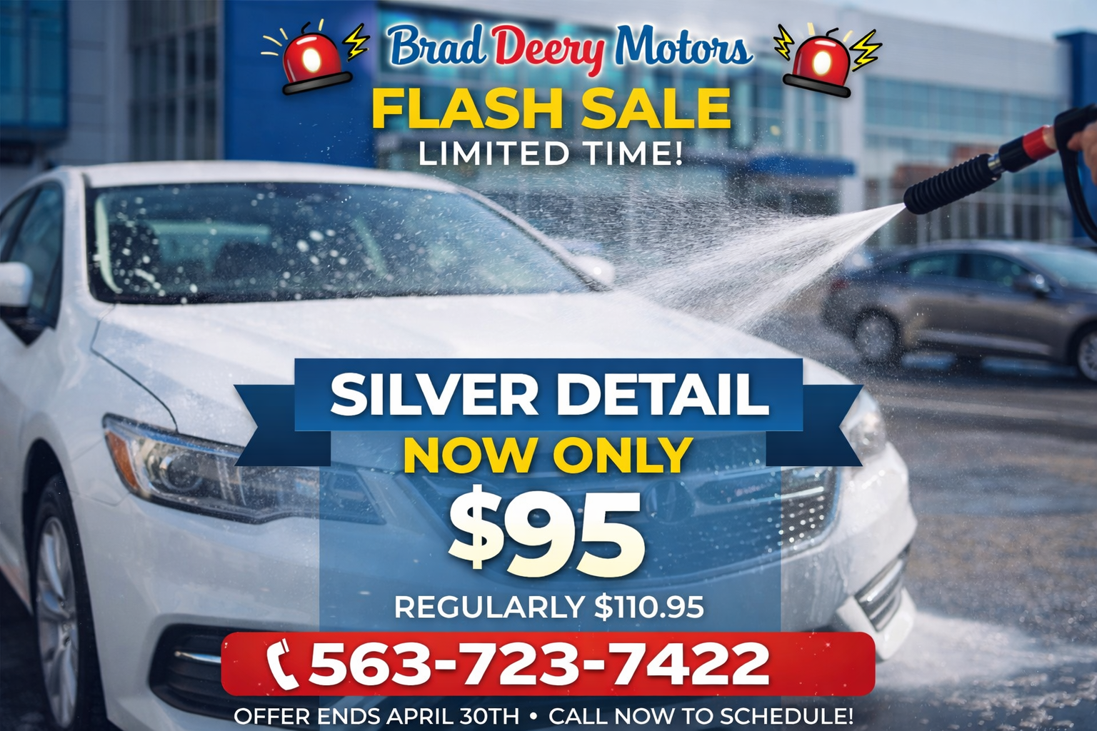 Freshen up your ride this spring with our limited-time Silver Detail Special at Brad Deery Motors. For just $95 (regularly $110.95), our team will get your vehicle looking clean, refreshed, and ready for the road. This offer is only available through the end of the month, so now is the perfect time to take advantage of the savings. Call 563-723-7422 to schedule your detail today.